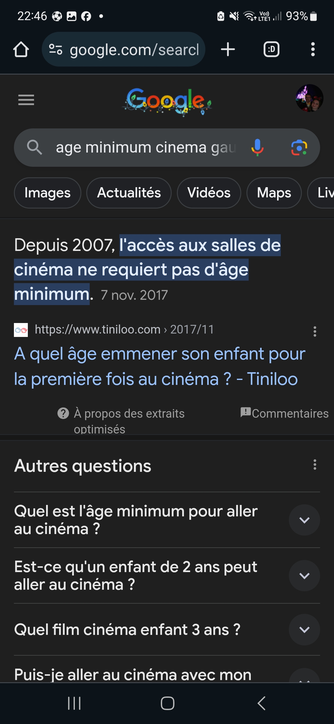 Une déception ! Un manque de respect et de professionnalisme ! Une certaine discrimination !!!! Tout ça ce soir ! Et oui merci à l'hôte d'accueil assez jeunes brun à lunette pour sont accueil inoubliable 😡 respect et politesse plus que moyenne avec une façon de parlé très narcissique ! Nous sommes des clients , peut être pas les roi mais vous nous devez tout de même le respect, lorsque je suis arrivé en famille avec mes parent ma compagne et ma fille de deux ans pour allez voir le disney wish nous avons immédiatement vue les regard et les discussions nous visant entre l'hôte d'accueil et sont collègue à côté de lui ! Celui ci nous a informé que la place étais payante pour les enfants mais que de toute façon c'est interdit pour les mois de 3 ans puis sans songer a l'erreur lors des scan pour avoir scanner deux fois le meme QR code nous dit il manque des place de facon a croire que nous voulions larnaquer ! je vous invite à voir la capture d'écran ci dessous depuis 2007 il n'y a plus d'âge minimum d'accès au cinéma ! D'ailleurs la petite n'a pas bouger de tout le film et la regarder entièrement dans le calme puisqu'elle adoré disney ! Il serait temps de pensez à former vos équipe sur l'accueil le commerce et la fidelisation clients ! J'ai ressenti un total manque de respect ! Déjà que les employés ne sont quasiment jamais agréable que les salle vieillissante ne sont plus au top de leur forme ( moquette qui ce detache ... ) la c'était la goutte d'eau qui fait dépassé le vase ! Je sais que nous ne sommes rien en rapport au revenus de la chaîne mais vous perdez deux ciné pass ! On dit souvent 1 client content c'est 1 client content et que 1 client pas content c'est 10 pas content je n'hésiterai pas à faire part de ma mésaventure a mes connaissances et a les incité à allez vers les concurent par ailleurs moin cher plus propre et plus agréable !